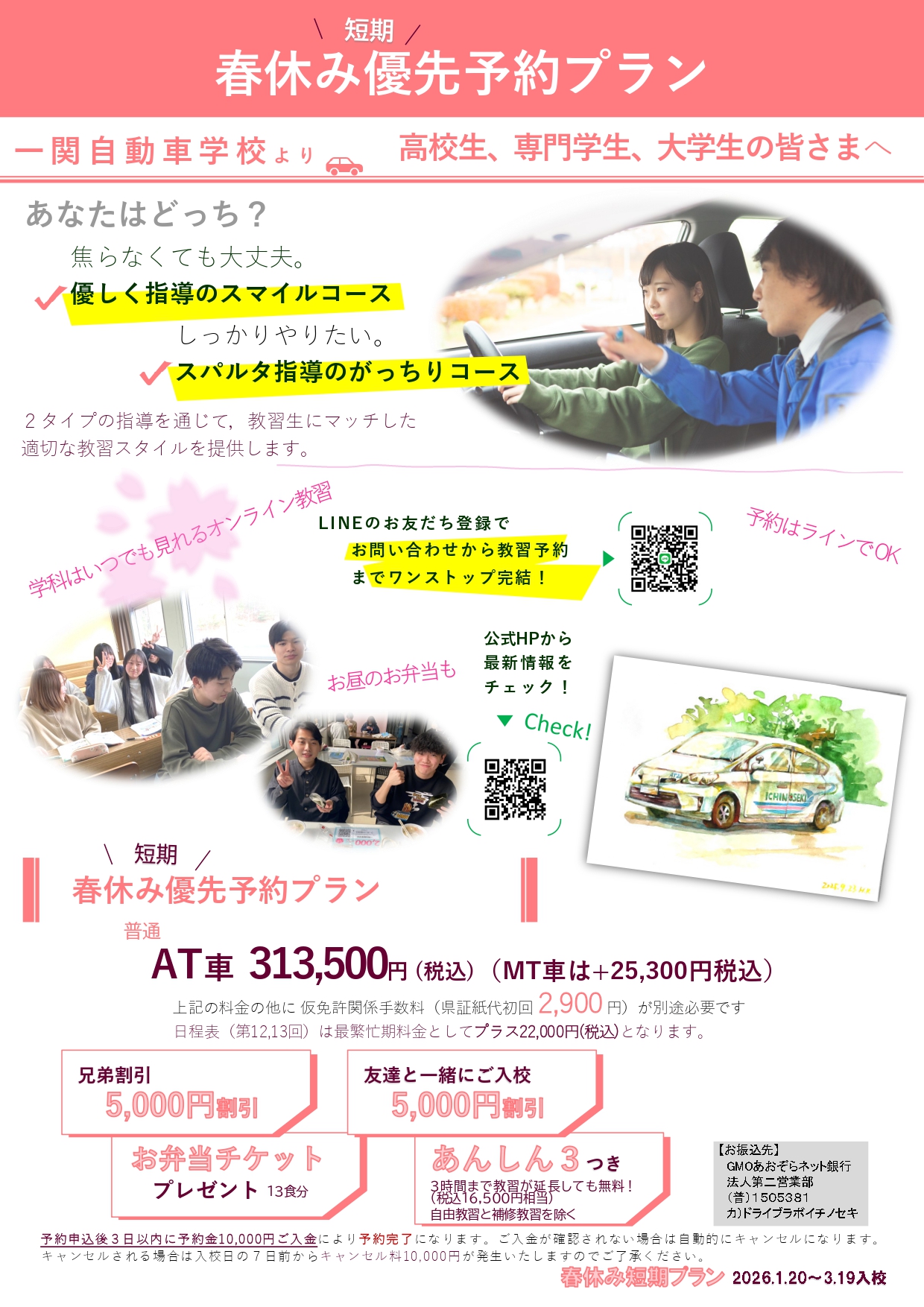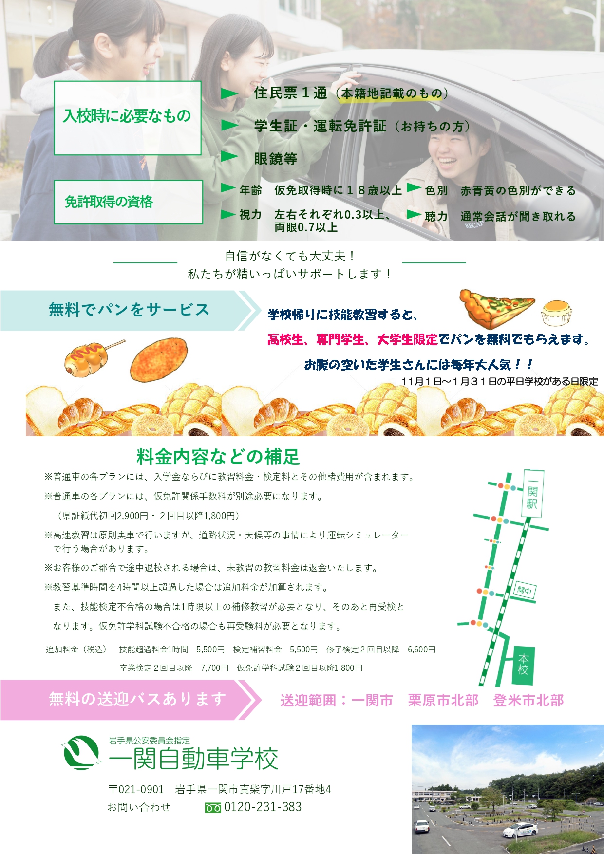 ※途中解約の際は、未受講の技能教習、学科教習、検定、卒業証明書代金をご返金させて頂きます。